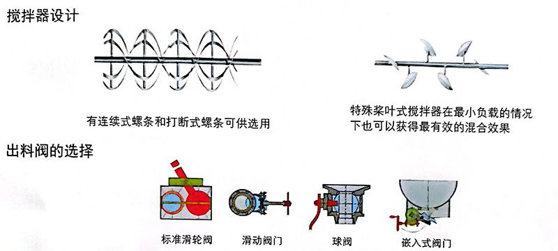 出料为标准滑轮阀、滑动阀门、球阀星形出料阀,嵌入式阀门。